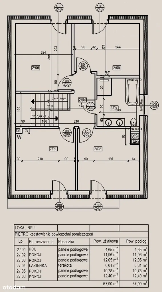 II. PIĘTRO o powierzchni użytkowej 57,90 m2: