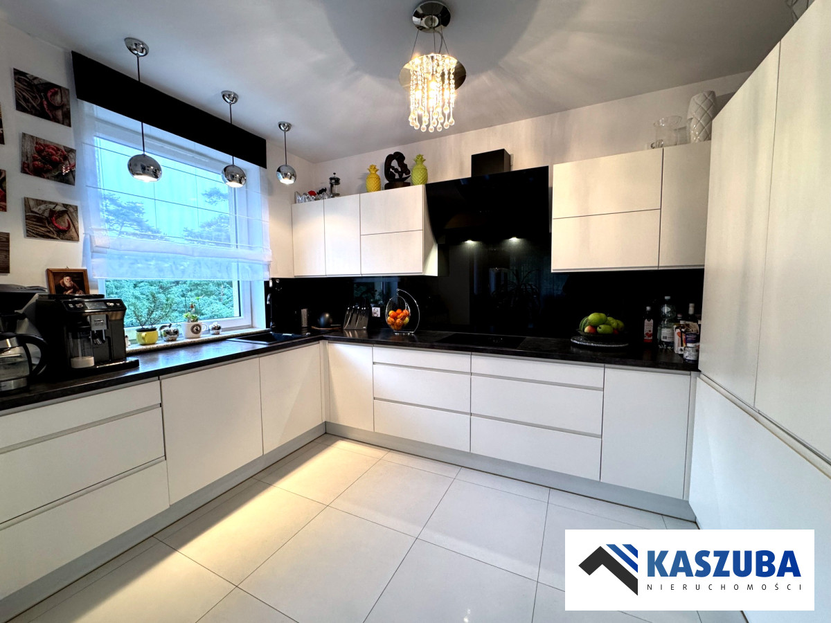 – kuchnia z oknem, połączona z salonem i jadalnią wyposażony w meble kuchenne wiszące oraz stojące wraz ze sprzętem AGD takim jak: lodówka, piekarnik, kuchenka, zmywarka, okap;
